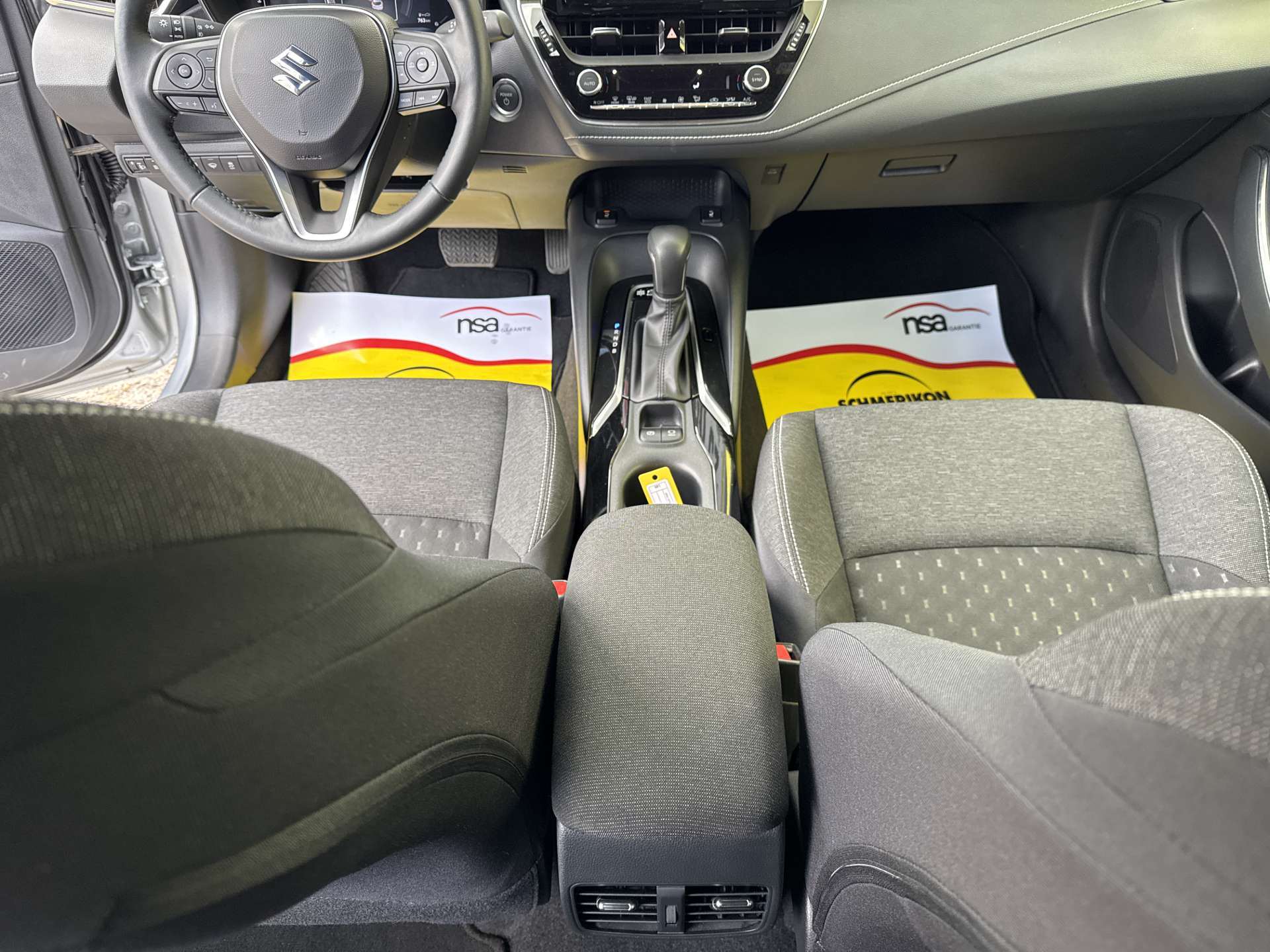3-Punkt-Sicherheitsgurte auf allen Plätzen, ABS mit elektronischer Bremskraftverteilung und Bremsassistent, Airbag: Airbag Beifahrer deaktivierbar, Airbag: Airbag Fahrer und Beifahrer, Airbag: Knie-Airbag für Fahrer, Airbag: Kopfairbags vorne und hinten, Airbag: Seitenairbag für Fahrer und Beifahrer, Assist: Adaptiver Tempomat, Assist: Aktiver Spurhalteassistent, Assist: Berganfahrhilfe, Assist: eCall, Assist: Elektrische Parkbremse, Assist: Intelligenter Geschwindigkeitsassistent (ISA), Assist: Notbremssystem mit Kollisionswarner, Assist: Rückfahrkamera, Assist: Spurleitassistent, Assist: Verkehrszeichenerkennung, Bodenteppiche, Dachreling, Elektrisch verstell-, heiz- und einklappbare Aussenspiegel, Elektrische Fensterheber vorne + hinten, ESP mit Traktionskontrolle, Garantie: Suzuki 12 Jahre Garantie gegen Durchrostung, Garantie: Suzuki 3 Jahre Werks- und Mobilitätsgarantie (max. 100000 km), Getriebe: E-CVT (Automatik), Gurtstraffer und Gurtkraftbegrenzer vorne und hinten, Heckspoiler, Innenspiegel automatisch abblendbar, ISOFIX-Kindersitzverankerung 2x, Keyless Start (schlüsselloses Einsteigen und Starten), Klima: 2-Zonen-Klimaautomatik, Klima: Pollenfilter (Staubfilter), Lackierung: Uni-Lackierung, Lederschaltknauf, Lenkrad: Bedientasten am Lenkrad für Audio und Telefon, Lenkrad: Lederlenkrad beheizt, Lenkrad: Lenkrad längs- und höhenverstellbar, Licht: Fernlicht-Assistent, Licht: LED Abblend-und Fernlicht, Licht: LED-Tagfahrlicht, Licht: Lichtautomatik, Licht: Nebelscheinwerfer, Media: 6 Lautsprecher, Media: 7" Multifunktionsdisplay, Media: 8"Touchscreen-Multimediasystem mit Smartphone-Anbindung, Bluetooth und DAB+, Media: USB-Anschluss für externe Audioquellen, Mittelarmlehne hinten, Mittelarmlehne vorne, Polster: Stoff-Ausstattung, Privacy Glass, Räder: Leichtmetallfelgen 16J, Räder: Reifendruck-Kontrollanzeige, Räder: Reifenreparatur-Set (Tire Fit), Regensensor, Scheibenwaschdüsen beheizt, Servolenkung, Sicherheitsgurte vorne höhenverstellbar, Sitze: Rücksitzlehne separat umklappbar (60/40), Sitze: Vordersitze heizbar, Sitze: Vordersitze höhenverstellbar, Sitze: Vordersitze umklappbar, Sonnenblenden vorne mit Schminkspiegel, Start-/Stopp-Automatik, Steckdose 12V, Türgriffe aussen in Wagenfarbe, Wegfahrsperre elektronisch, Zentralverriegelung mit Fernbedienung