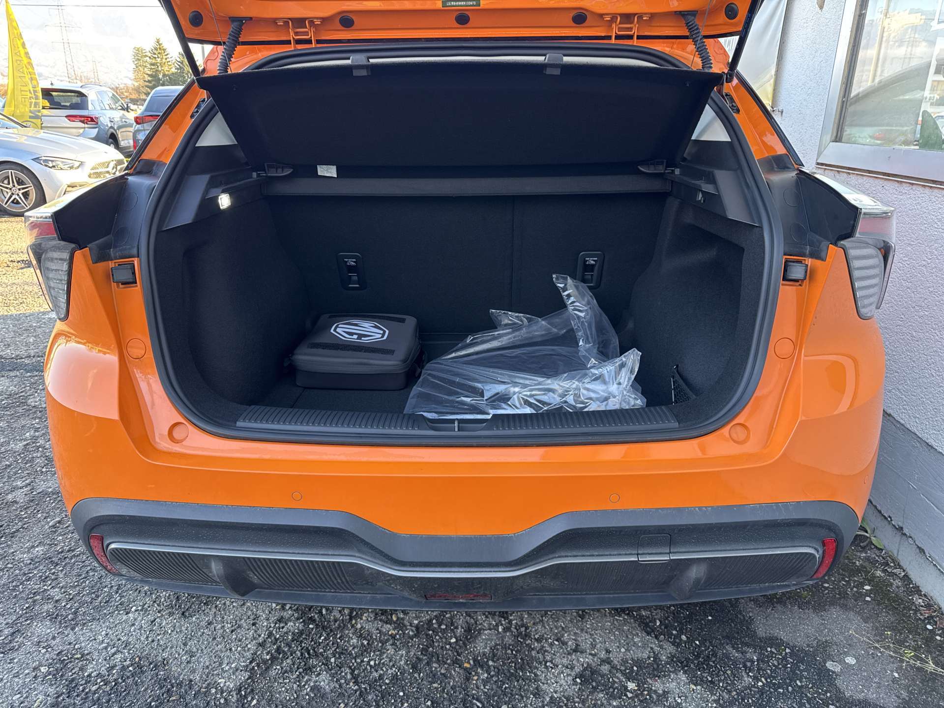 3-Punkt-Sicherheitsgurte auf allen Plätzen, Airbag: Airbag Fahrer und Beifahrer, Airbag: Kopfairbags vorne, Airbag: Seitenairbags, Antiblockiersystem (ABS), Assist: MG Pilot: ACC/TJA/FCW/AEB/IHC/SAS/LDW/LKA/UDW, Auto Start/Stop & Keyless Entry, Beheizbare Aussenspiegel, Elektrische Fensterheber vorne + hinten, ESP und TCS, Fahrwerk: "One Pedal"-Fahrmodus, Garantie: 7 Jahre oder 150'000 km, Getriebe: Direktantrieb, kein Getriebe, Heckscheiben-Wisch-/Waschanlage, Klima: Automatische Klimaanlage, Lackierung: Uni-Lackierung, Licht: Drittes Bremslicht, Licht: LED-Beleuchtung (Tagfahrlicht/Vorder-/Rücklicht), Licht: Nebelschlussleuchte, Media: 4 Lautsprecher, Media: Android Auto/Apple CarPlay, Media: Digital Cluster 7'', Media: iSMART Lite, Media: Touch Screen 10.25'', Polster: Stoff-Ausstattung, Räder: 17-Zoll-Leichtmetallfelgen, Reserverad, Servolenkung geschwindigkeitsabhängig, Sitze: 6-fach verstellbarer Fahrersitz, Sitze: Rücksitzbank umklappbar 60/40, Sonnenbrillenhalter, Vehicle to Load, Wegfahrsperre elektronisch, Zentralverriegelung mit Fernbedienung