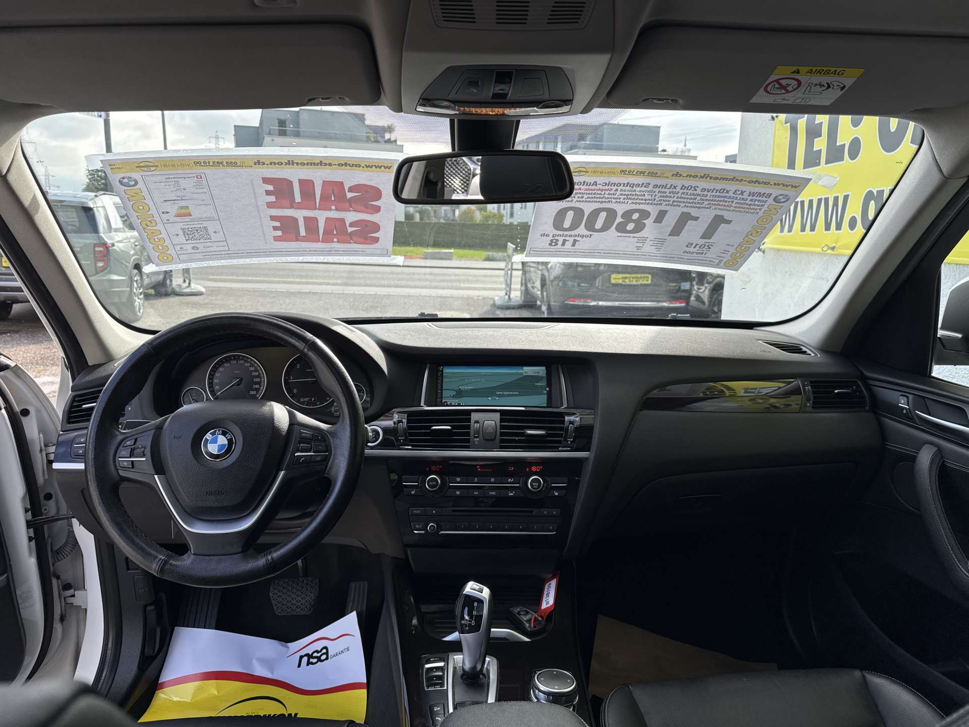 8-Stufen-Automat sequentiell, Abschliessbare Radschrauben, Airbag: Airbag Beifahrer deaktivierbar, Airbag: Airbag Fahrer und Beifahrer, Airbag: Seitenairbag für Fahrer und Beifahrer, Aktive Kopfstützen, Allradantrieb permanent, Antiblockiersystem (ABS), Assist: Dynamische Traktionskontrolle (DTC), Assist: Tempomat mit Bremsfunktion, Aussenspiegel rechts und links beheizbar und elektrisch verstellbar, Auto Start-/Stop-Anlage, Automatische Parkbremse, AUX-Anschluss, Blinker in Aussenspiegel, Bordcomputer, Bremsassistent (BAS), Bremsbelag-Verschleissanzeige, Bremsenergie-Rückgewinnung, Cupholder vorne, DAB+ (Digital Audio Broadcasting), Drittes Bremslicht, Durchladesystem, Dynamische Stabilitätskontrolle (DSC), Fahrerlebnisschalter inkl. ECO PRO, Hill Descent Control (HDC), Innenspiegel automatisch abblendbar, Intelligenter Notruf, Interieurleisten Dark Cooper, ISOFIX Kindersitzvorrichtung, Klimatisierungsautomatik, Lackierung: Uni-Lackierung, Leichtmetallfelgen im Y-Speiche, Lenkrad: Lenkrad längs- und höhenverstellbar, Lenkrad: Multifunktionslenkrad, Lenkung, elektrisch unterstützt, Make up-Spiegel links, Make up-Spiegel rechts, Mittelarmlehne hinten, Mittelarmlehne vorne, Nebelscheinwerfer, Partikelfilter und Oxydationskatalysator, Performance Control, Radio BMW Professional, Reifendruckverlust-Warnsystem, Sitze: Ausführung 5 Sitzplätze, Sport-Lederlenkrad, Start-/Stop-Knopf, Steckdose 12V, Stoff-/Lederkombination 'Carve', TeleService, Veloursfussmatten vorne und hinten, Window-Kopfairbags, Zentralverriegelung mit Fernbedienung, Zusätzliche 12V Steckdosen