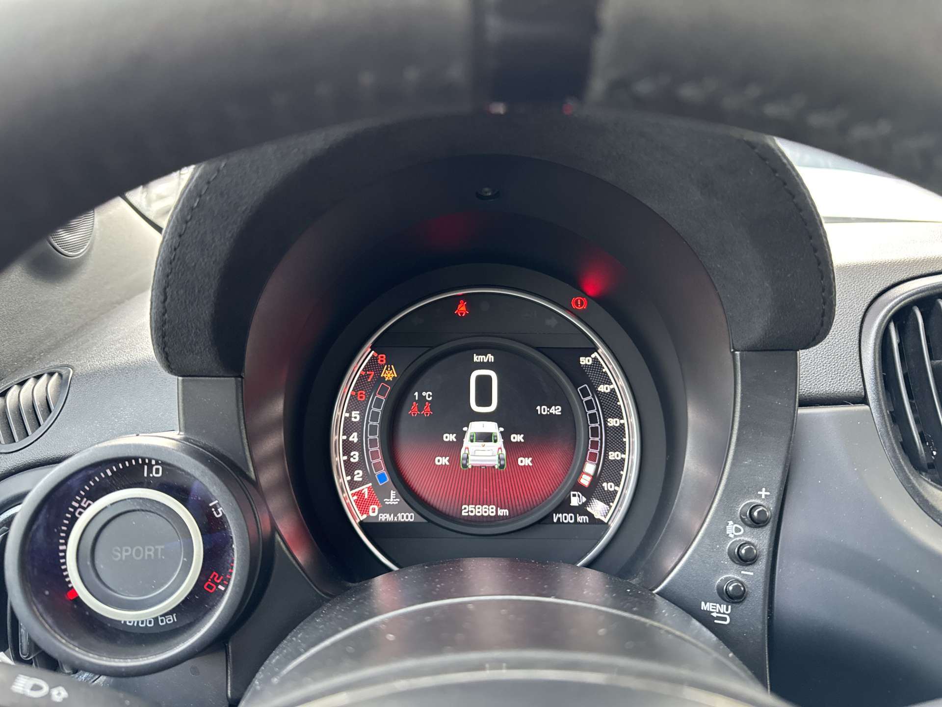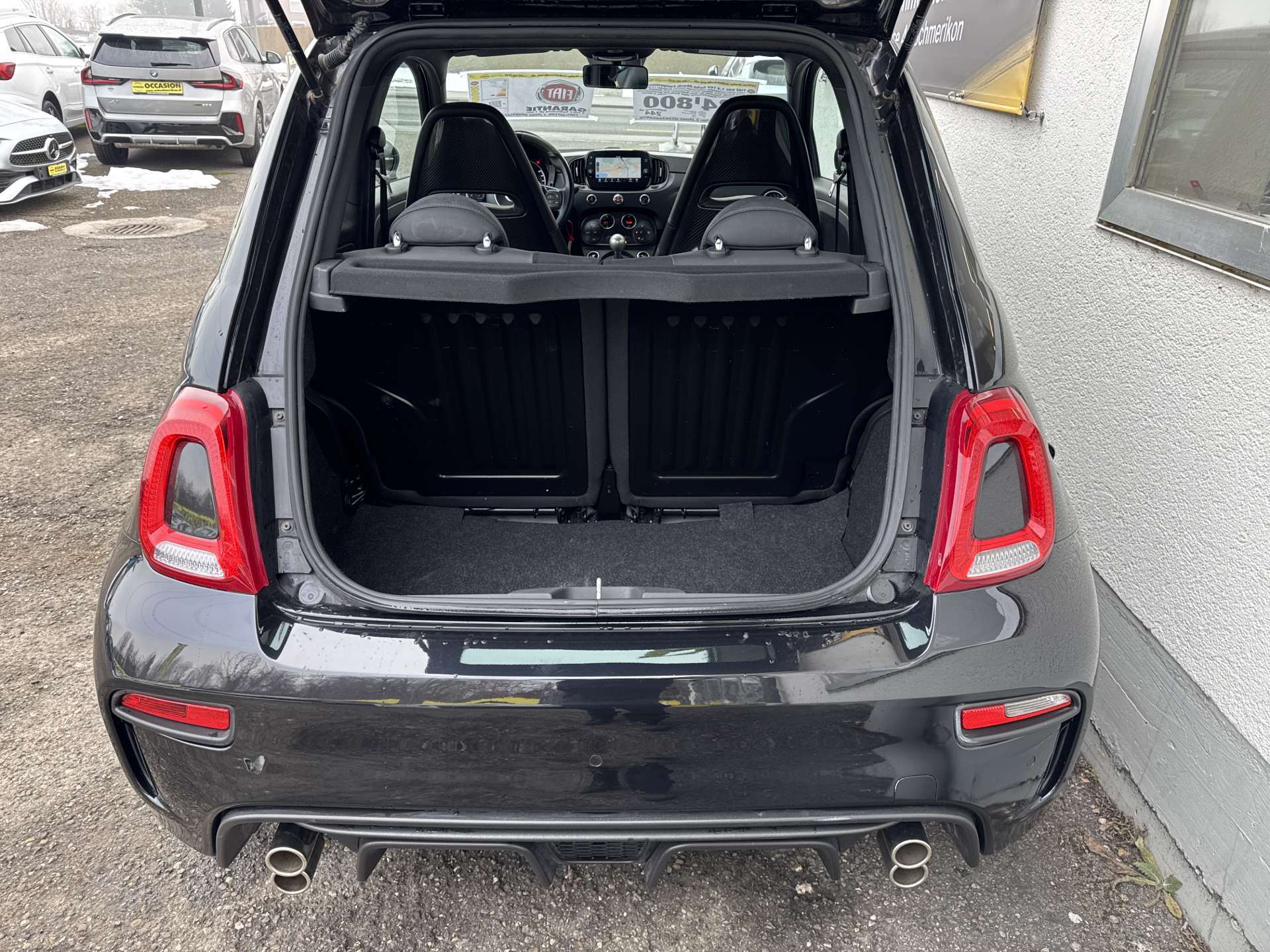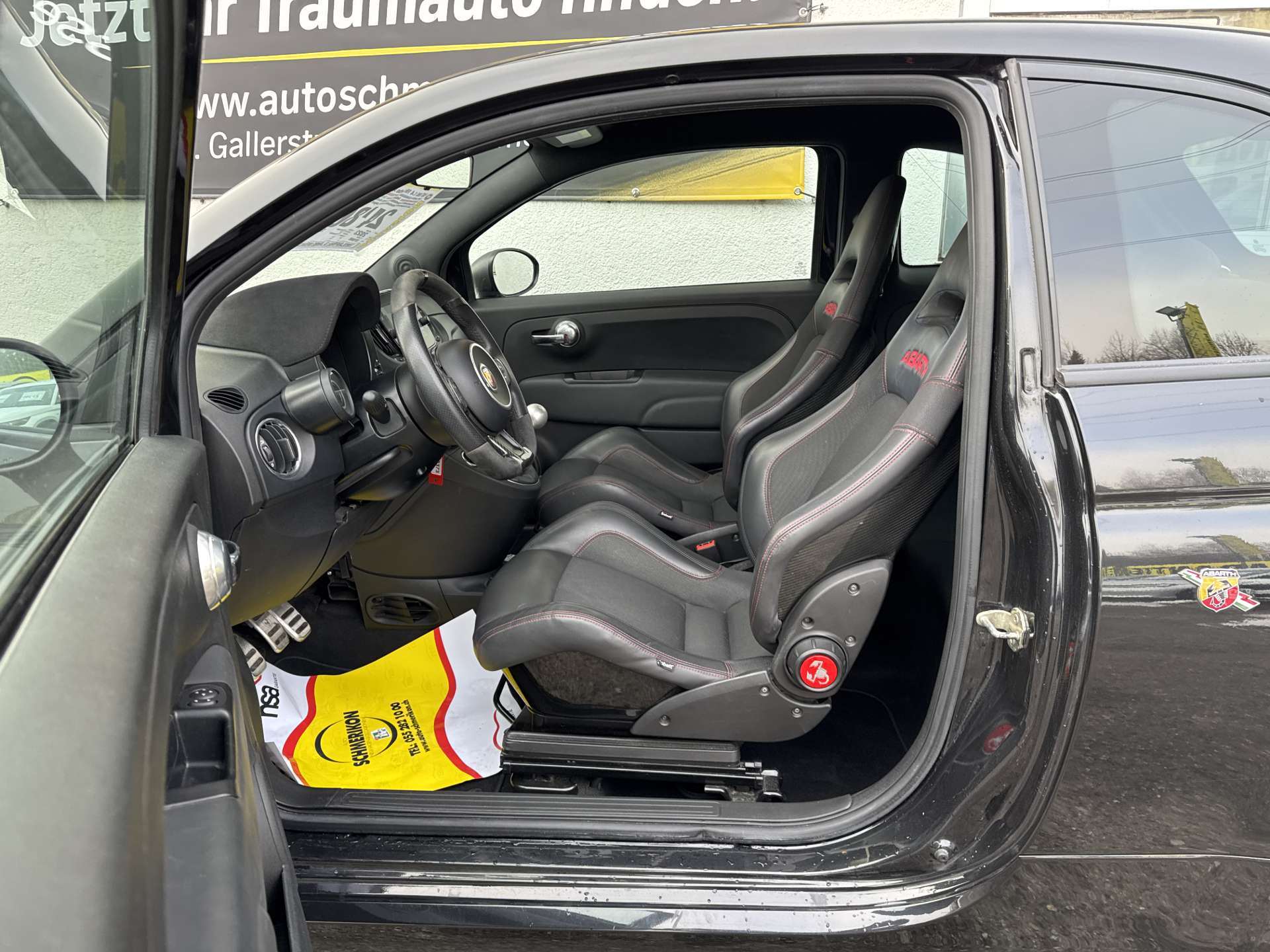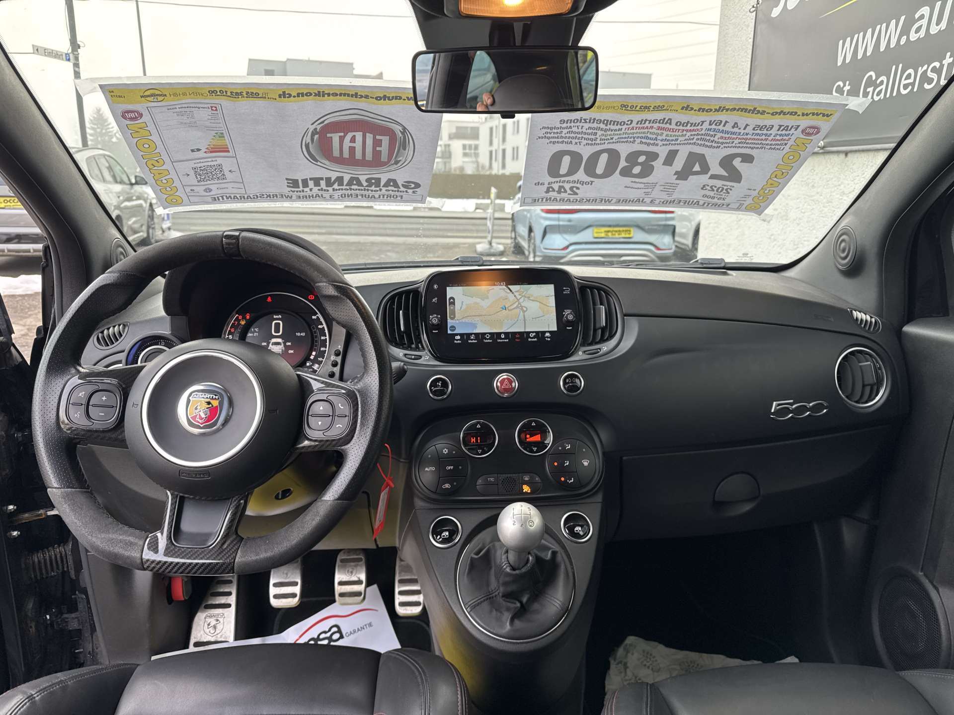 3-Punkt-Sicherheitsgurte auf allen Plätzen, Abarth Sportpedalerie, Airbag: Airbag Fahrer und Beifahrer mit dual Stage system, Airbag: Kopfairbags und Knie-Airbag auf Fahrerseite, Aktive Record Monza Auspuffanlage mit zwei vertikalen Auspuffrohren, Antenne 'Record' integriert in hintere Seitenscheibe, Anti-Submarining-Struktur für alle Sitzplätze, Antiblockiersystem (ABS) und elektronische Bremskraftverteilung (EBD), Assist: Elektronisches Stabilitäts-Programm (ESP) mit Antischlupfregelung (ASR) und Hill Holder, Assist: Notbremsassistent, Assist: Parksensoren hinten, Aussenspiegelkappen in Satiniertem Chrom, Automatische Aktivierung der Warnblinkanlage bei Notbremsung, Badge 695, Brandschutzsystem / Fire Prevention System (FPS), Brembo-Bremssystem mit Bremszangen in gelb, COMPETIZIONE BADGE, Dekor: Armaturenbretteinlage in schwarz matt, Drehzahlmesser, Elektrisch verstellbare und beheizbare Aussenspiegel und Temperatursensor, Elektrische Fensterheber vorne, Elektrische Servolenkung Dualdrive, Fahrwerk: Sportfahrwerk, Garantie: 3 Jahre ohne Kilometerbegrenzung (ab 1. Inv.), Garrett Turbolader, Getriebe: Schaltgetriebe MT, Heckscheibenwischaschanlage und beheizbare Heckscheibe, Hintere Seitenscheiben und Heckscheibe getönt, ISOFIX-Befestigung für Kindersitze, Katalysator geregelt, Klima: Klimaautomatik mit Pollenfilter, Koni Stossdämpfer mit FSD-Technologie hinten, Koni Stossdämpfer mit FSD-Technologie vorne, Kopfstützen hinten versenkbar, Lackierung: Uni-Lackierung, Lenkrad: Alcantara-Lederlenkrad mit 12-Uhr-Markierung und Lenkradeinlagen aus Carbon, Lenkrad: Lederlenkrad mit Bedienelementen für Audiosystem, Licht: Drittes Bremslicht, Licht: Follow me home-Lichtfunktion, Licht: Nebelscheinwerfer, Licht: Nebelschlussleuchte, Licht: Poly-Elliptische Frontscheinwerfer, Licht: Tagfahrlicht, Media: Android Auto/Apple CarPlay, Media: Audio Beats System, Media: Uconnect 7 "-Touchscreenradio mit Navigationssystem, Bluetooth, USB, AUX, DAB+, Räder: Leichtmetallfelgen 17" Supersport schwarz matt - Bereifung 205/40 R17, Räder: Reifendruck-Kontrollsystem (TPMS), Record Monza Sovrapposto Sportauspuffanlage, Regen- und Lichtsensor, Schaltempfehlungsanzeige - Gear Shift Indicator GSI, Sicherheitsgurte vorn mit Gurtstraffern und Gurtkraftbegrenzern, Sitze: Geteilt umlegbare Rücksitzbank (50/50) mit Kopfstützen hinten, Sitze: Rennsportsitze "GT BY SABELT" Stoff Schwarz, Sport-Taste für direktere Gasannahme und Lenkung sowie Erhöhung des maximalen Drehmoments, Torque Transfer Control (TTC / Elektonisches Sperrdifferenzial), Versperrbare Tankverschlusskappe, Wärmeschutzverglasung, Wegfahrsperre elektronisch, Zentralverriegelung mit Fernbedienung, Zusatzinstrument mit analoger Ladedruckanzeige und Display für Sportmodus