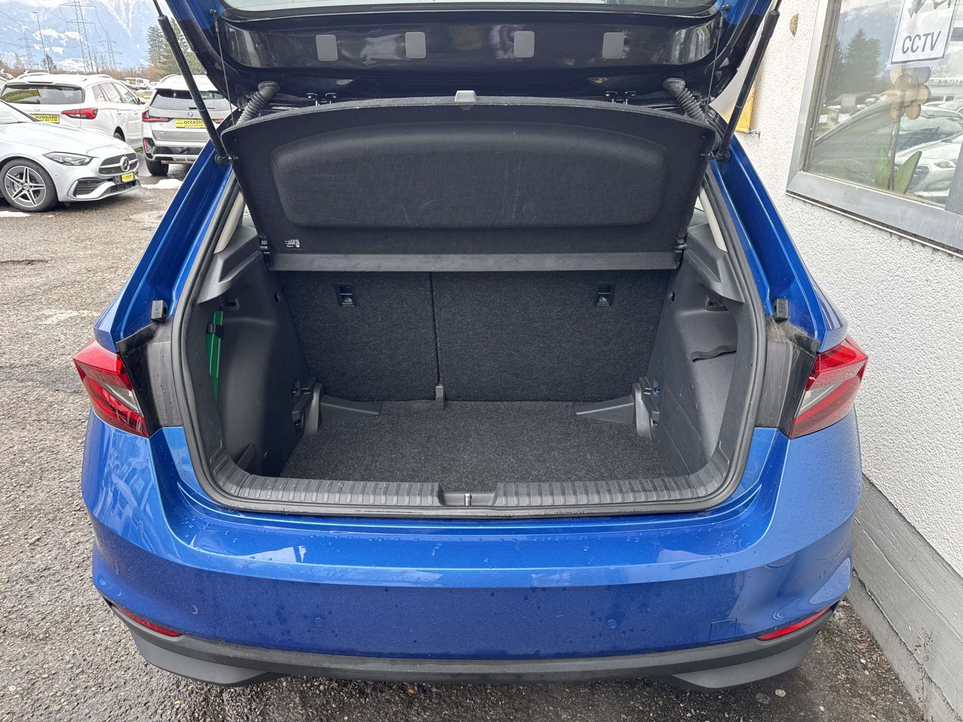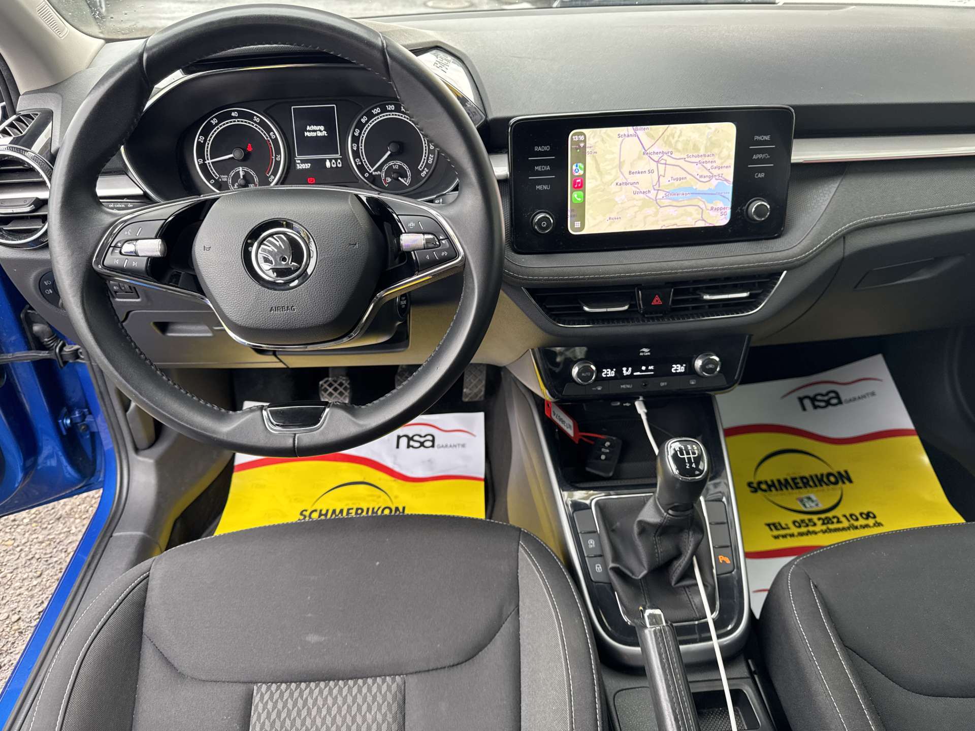 3 Kopfstützen hinten, Airbag: Kopf- und Seitenairbags vorne, Antiblockiersystem (ABS), Assist: Berganfahrassistent, Assist: Front Assistant inkl. City-Notbremsfunktion, Assist: Geschwindigkeitsregelanlage (Tempomat), Assist: Müdigkeitserkennung, Assist: Notrufsystem Emergency-Call, Assist: Parksensoren hinten, Assist: Rain Light Assist, Assist: Speedlimiter, Assist: Spurhalteassistent "Lane Assist", Aussenspiegel in Wagenfarbe, Aussenspiegel rechts und links beheizbar und elektrisch verstellbar, Drittes Bremslicht LED, EASY START, Elektrische Fensterheber vorne + hinten, Elektronisches Stabilitäts-Programm (ESP), Fensterleiste in Chrom, Funktionspaket, Getriebe: 6-Gang-Getriebe, Gurtanlegesignalisation für alle Passagiere, Heckscheiben-Wisch-/Waschanlage, Heckscheibenheizung, Katalysator geregelt, Klappbare Mittelarmlehne vorn mit Jumbobox, Luftausströmer hinten und Cupholder abnehmbar mit, Klima: Klimatisierungsautomatik Climatronic, Lackierung: Uni-Lackierung, LED Ambiente Beleuchtung weiss / rot, Lenkrad: 2-Speichen-Leder-Multifunktionslenkrad mit kleinem Lederpaket, Licht: Bi-LED Scheinwerfer mit LED Tagfahrlicht, LED Corner Funktion, Licht: Nebelscheinwerfer, Media: Bluetooth, Media: DAB+ (Digital Audio Broadcasting), Media: Radio BOLERO mit 8" Farb-Touchscreen, zwei USB Anschlüsse inkl. Apple CarPlay und SmartLink, Media: SmartLink, Media: Zwei USB-C Anschlüsse vorne, Media: Zwei zusätzliche Lausprecher hinten, Motoranlass- und Abschaltfunktion ohne Schlüssel, Multifunktionsanzeige mit Maxi Dot Display (erweiterter Bordcomputer), Nebelschlussleuchte, Pollenfilter (Staubfilter), Polster: Sitzbezüge Stoff Nuba grau/schwarz / Dekoreinlage am Armaturenbrett Brushed Grey Metallic, Proactive Services, Räder: Reifendruckkontrollsystem, Rücksitzlehne geteilt umklappbar (60:40), Scheibenwaschdüsen beheizt, Servolenkung, Sitze: Höhenverstellbare Vordersitze mit manueller Lordose, Teppichfussmatten vorne und hinten, Wassertemperaturanzeige, Zentralverriegelung mit Funkfernbedienung (2 klappbare Schlüssel)