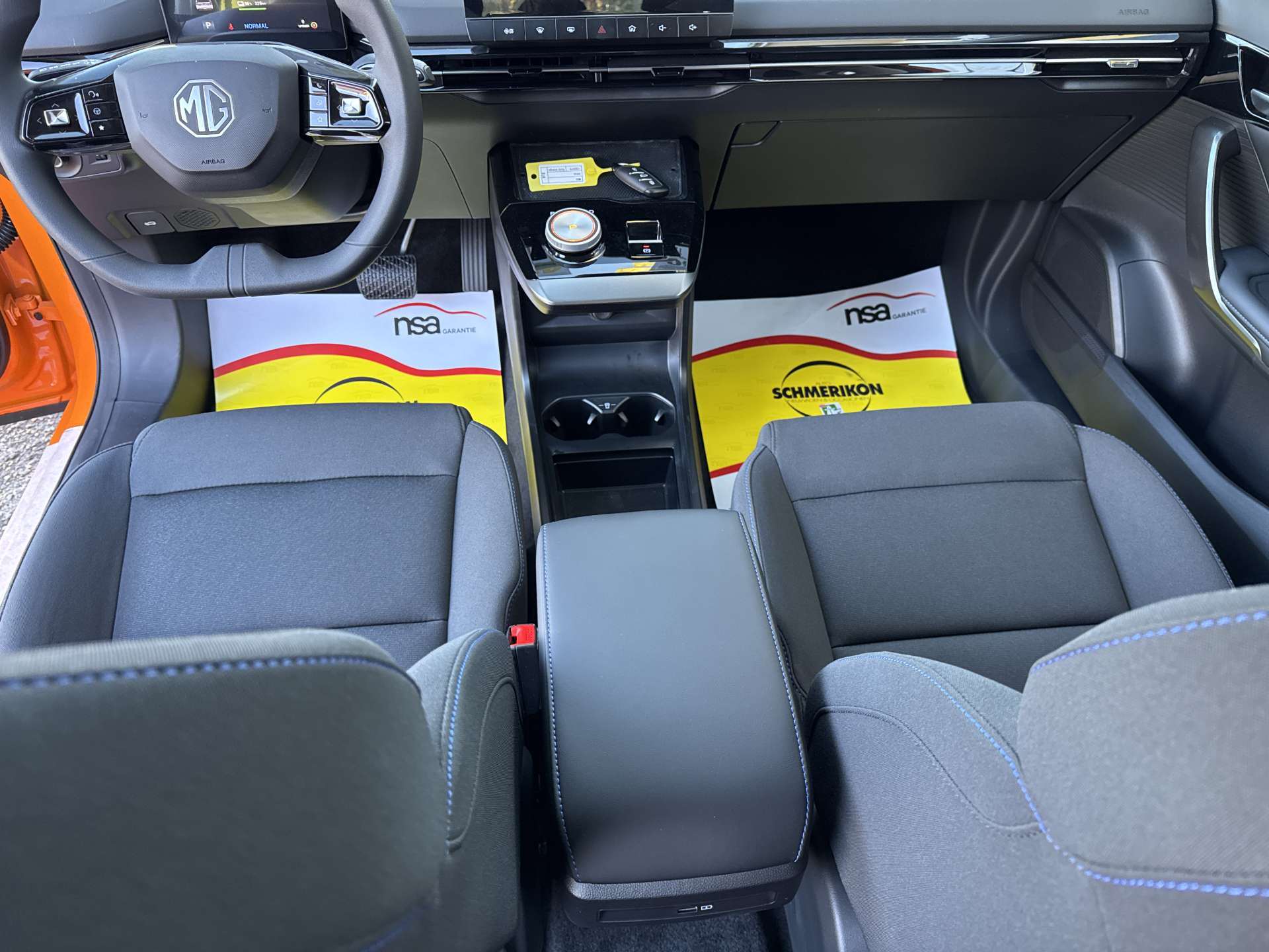 3-Punkt-Sicherheitsgurte auf allen Plätzen, Airbag: Airbag Fahrer und Beifahrer, Airbag: Kopfairbags vorne, Airbag: Seitenairbags, Antiblockiersystem (ABS), Assist: MG Pilot: ACC/TJA/FCW/AEB/IHC/SAS/LDW/LKA/UDW, Auto Start/Stop & Keyless Entry, Beheizbare Aussenspiegel, Elektrische Fensterheber vorne + hinten, ESP und TCS, Fahrwerk: "One Pedal"-Fahrmodus, Garantie: 7 Jahre oder 150'000 km, Getriebe: Direktantrieb, kein Getriebe, Heckscheiben-Wisch-/Waschanlage, Klima: Automatische Klimaanlage, Lackierung: Uni-Lackierung, Licht: Drittes Bremslicht, Licht: LED-Beleuchtung (Tagfahrlicht/Vorder-/Rücklicht), Licht: Nebelschlussleuchte, Media: 4 Lautsprecher, Media: Android Auto/Apple CarPlay, Media: Digital Cluster 7'', Media: iSMART Lite, Media: Touch Screen 10.25'', Polster: Stoff-Ausstattung, Räder: 17-Zoll-Leichtmetallfelgen, Reserverad, Servolenkung geschwindigkeitsabhängig, Sitze: 6-fach verstellbarer Fahrersitz, Sitze: Rücksitzbank umklappbar 60/40, Sonnenbrillenhalter, Vehicle to Load, Wegfahrsperre elektronisch, Zentralverriegelung mit Fernbedienung
