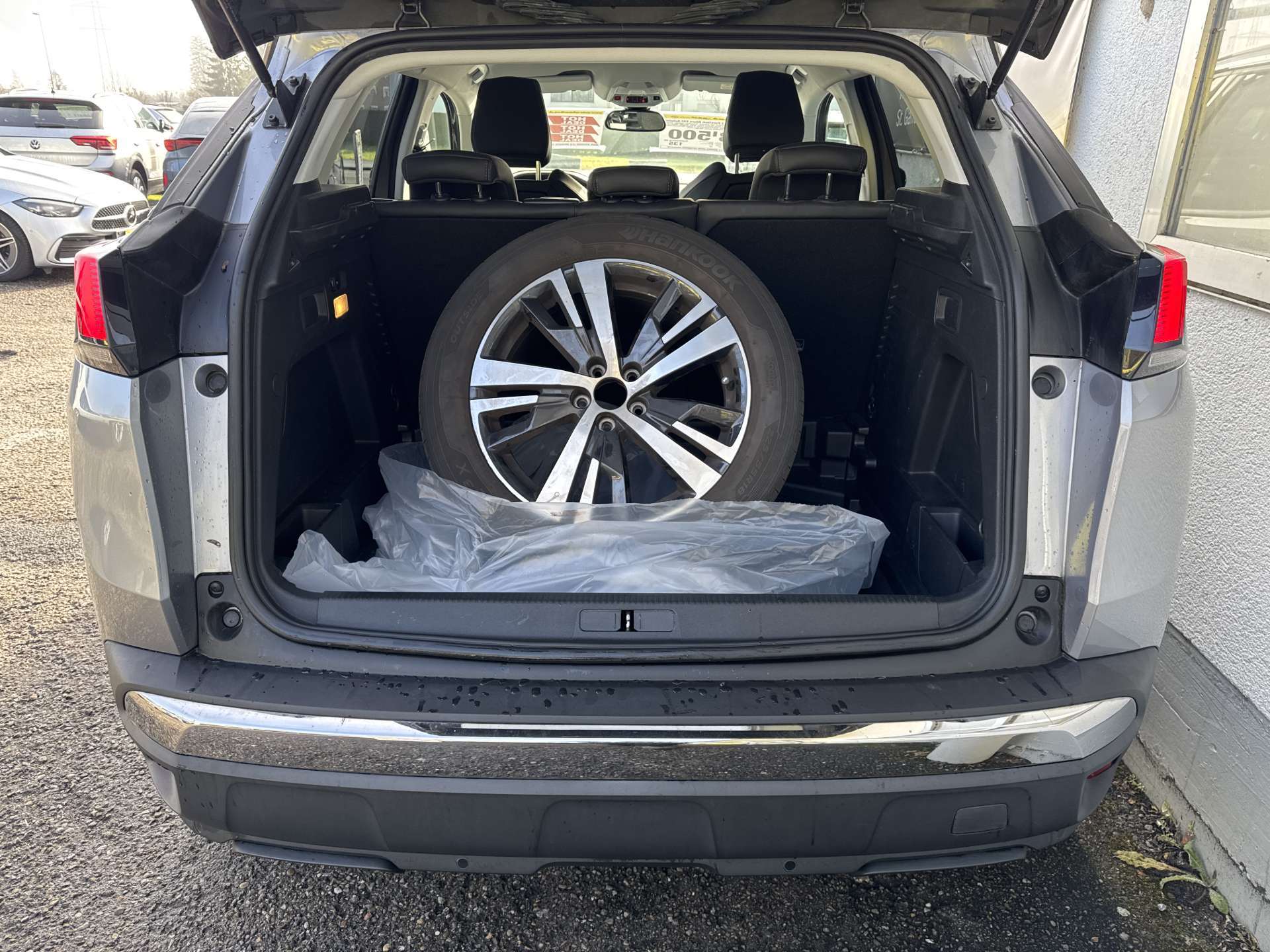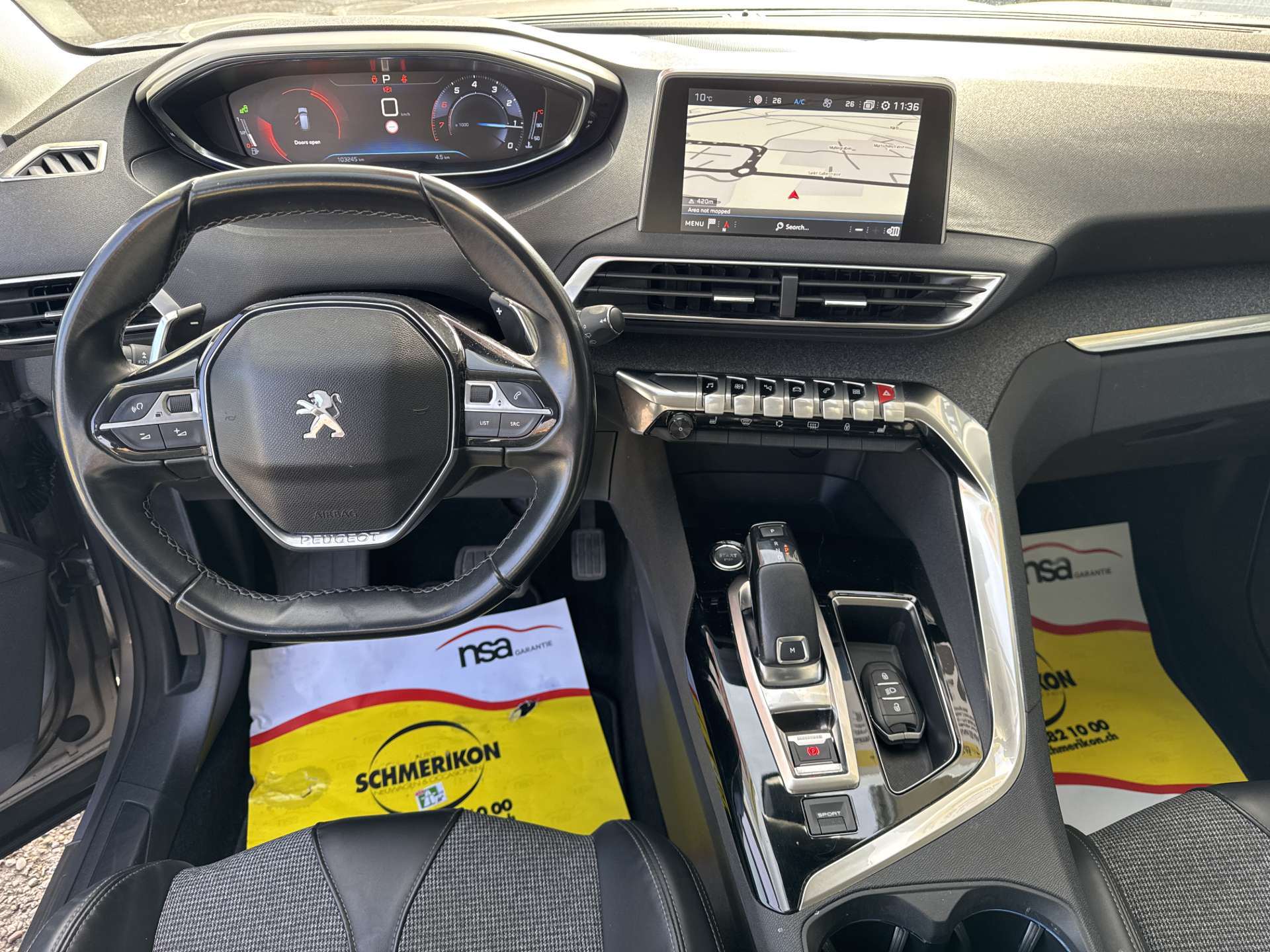 12-Volt-Steckdose hinten, 12-Volt-Steckdose vorne, 3-Punkt-Sicherheitsgurte auf allen Plätzen, 6-Stufen-Automat sequentiell, Abgedunkelte Seiten- und Heckscheibe, Ablagefach im Fussboden (Fond), Airbag: Airbag Beifahrer deaktivierbar, Airbag: Fahrer und Beifahrer, Airbag: Seitenairbag für Fahrer und Beifahrer, Airbag: Window-Kopfairbags, Antriebsschlupfregelung (ASR), Armauflage vorn mit Ablagefach und, Assist: ABS, EBD, elektronische Bremskraftverteilung, Assist: Active Safety Brake, Assist: Einparkhilfe vorne und hinten, Assist: Müdigkeitserkennung, Assist: Spurassistent, Assist: Verkehrsschild-Erkennungssystem, Aussenspiegel rechts und links beheizt, elektrisch verstell- / und einklappbar, Aussenspiegel und Türgriffe in Wagenfarbe, Aussentemperaturanzeige, Beide Make up-Spiegel beleuchtet, Beifahrersitz mit Klapptisch, Beleuchtetes Handschuhfach, Berganfahrhilfe, Bordcomputer, Bremsassistent (BAS), City Safety, Dachreling in Aluminium, Digital Uhr, Drehzahlmesser, Elektrische Fensterheber vorne + hinten, Elektronische Parkbremse, Elektronisches Stabilitäts-Programm, Gangempfehlung, Getönte Scheiben, Getränkehalter, 2 vorne, Gurtstraffer vorne, Gurtwarneinrichtung für Fahrer- und, Haltegriff in Mittelkonsole, Heckscheiben-Wisch-/Waschanlage, Heckscheibenheizung, Innenspiegel automatisch abblendbar, ISOFIX-Befestigungspunkte für Kindersitz, Kartentaschen an den Rückenlehnen, Katalysator geregelt, Klima: 2-Zonen-Klimaautomatik, Kofferraumbeleuchtung, Kollisionswarnung, Kopfstützen hinten höhenverstellbar, Kopfstützen vorne höhenverstellbar, Kreuzstütze für Fahrersitz verstellbar, Kühlergrill verchromt, Lackierung: Uni-Lackierung, LED Heckleuchten, LED Innenlichtpaket, Lederlenkrad, Lenkrad: Lenkrad längs- und höhenverstellbar, Leseleuchten vorne, Licht- und Regensensor, Licht: Abblendlichtausschaltverzögerung 'Follow me home', Licht: Drittes Bremslicht, Licht: Fernlicht-Assistent, Licht: LED-Tagfahrlicht, Licht: Leseleuchten hinten, Licht: Nebelschlussleuchte, Media: Touchscreen, Media: USB-Anschluss, Mirror Screen, Mittelkonsole mit Ablagefach, Navigationssystem mit Sprachsteuerung, Nebelscheinwerfer mit Chromeinfassung, Optisches und akustische Warnsignal, Pannenset, Peugeot Garantie: 12 Jahre gegen Karosserie-Durchrostung, Peugeot Garantie: 3 Jahre oder 80'000 km (ab 1. Inv.), Pollenfilter (Staubfilter), Polster: Stoff-/Kunstleder-Ausstattung, Räder: Leichtmetallfelgen Detroit 18J, Räder: Reifendruck-Kontrollanzeige, Radio MP3 und Bluetooth, Radiofernbedienung, Radiovorbereitung, Antenne, Entstörung, Rücksitzlehne geteilt abklappbar, Scheibenwischer vorne mit Intervall, Servolenkung geschwindigkeitsabhängig, Stopp-/Start-System, Stossstangen in Wagenfarbe, Tempomat mit Geschwindigkeitsbegrenzer, Totwinkel-Assistent, Vordersitze höhenverstellbar, Wartungsintervall-Anzeige, Wegfahrsperre elektronisch, Zentralverriegelung mit Fernbedienung