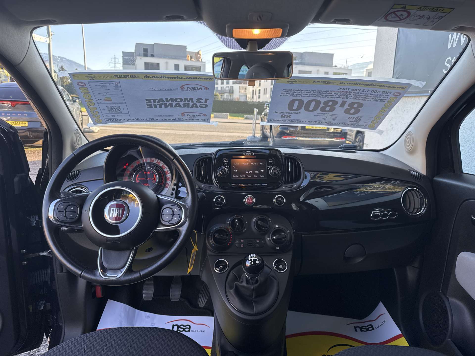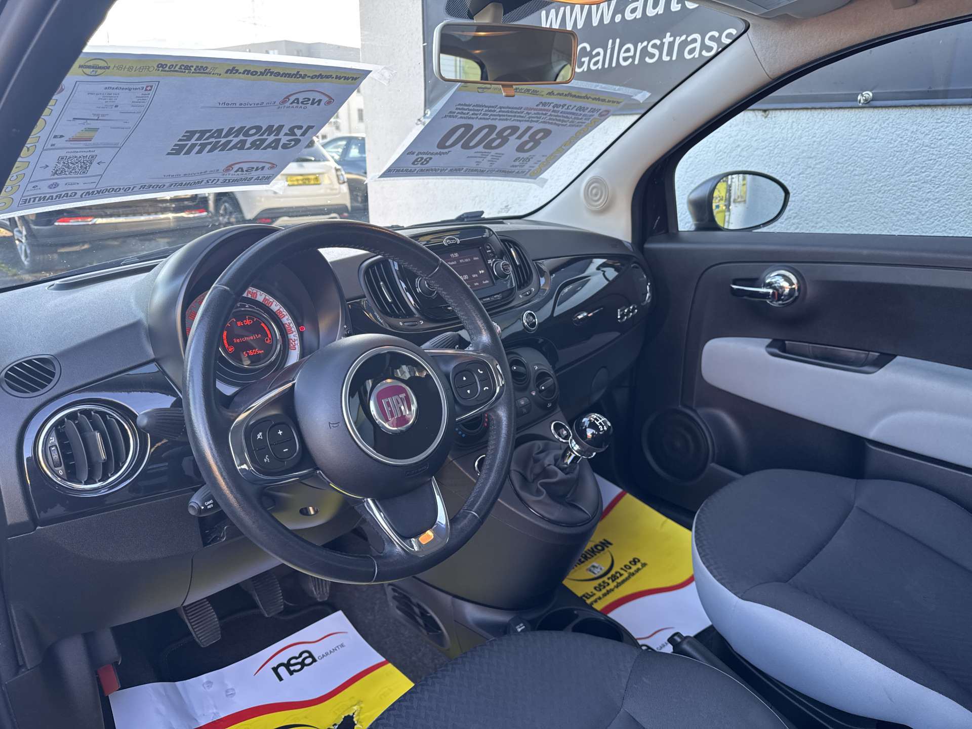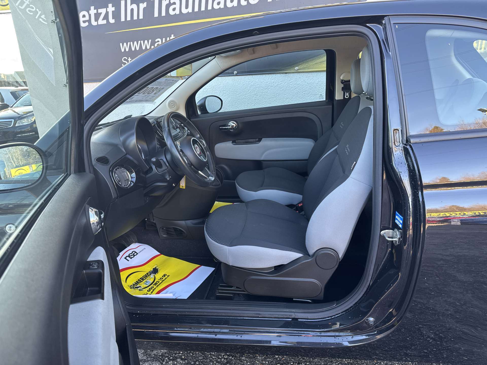 3-Punkt-Sicherheitsgurte auf allen Plätzen, Abblendlichtausschaltverzögerung 'Follow me home', Airbag: Airbag Fahrer und Beifahrer inkl. Seitenairbags, Airbag: Airbag Fahrer und Beifahrer inkl. Seitenairbags, Airbag: Knie-Airbag für Fahrer, Airbag: Knie-Airbag für Fahrer, Airbag: Window-Kopfairbags, Airbag: Window-Kopfairbags, Antiblockiersystem (ABS), Assist: Antriebsschlupfregelung (ASR), Assist: Bremsassistent (BAS), Berganfahrhilfe (Hill Holder), Bordcomputer, Drehzahlmesser, Durchtauchschutz auf allen Sitzplätzen, Elektrische Fensterheber vorne, Elektrische Fensterheber vorne, Elektronischer Bremskraftverteilung EBD, Elektronisches Stabilitäts-Programm (ESP), Fiat Garantie: 3 Jahre ohne Kilometerbegrenzung (ab 1. Inv.), Getönte Scheiben, Getriebe: 5-Gang-Getriebe, Gurtkontrolle, Gurtstraffer vorne, Haltegriff für Beifahrer, Heckscheiben-Wisch-/Waschanlage, Heckscheiben-Wisch-/Waschanlage, Heckscheibenheizung, Heckscheibenheizung, ISOFIX Kindersitzvorrichtung, Katalysator geregelt, Klima: Klimaanlage manuell, mit Pollenfilter, Klima: Klimaanlage manuell, mit Pollenfilter, Komfortblinker, Kopfstützen vorne höhenverstellbar, Lackierung: Uni-Lackierung Carrara-Grau, Lenkrad: Lenkrad höhenverstellbar, Lenkrad: Lenkrad höhenverstellbar, Licht: Drittes Bremslicht, Licht: LED-Tagfahrlicht, Licht: Nebelschlussleuchte, Make up-Spiegel rechts, Polster: Stoffsitze, Räder: Reifendruck-Kontrollanzeige, Räder: Reifenpannen-Kit, Räder: Reifenpannen-Kit, Radzierblenden, RDS-Autoradio mit USB/AUX, 4 LS, Scheibenwischer vorne mit Intervall, Servolenkung, Servolenkung, Stahlräder, Start/Stop-Funktion, Start/Stop-Funktion, Steckdose 12V, Steckdose 12V, Stossstangen in Wagenfarbe, Stossstangen in Wagenfarbe, Tageskilometerzähler, Tankdeckel abschliessbar, Tankdeckel abschliessbar, Türgriffe aussen verchromt, Uni-Lackierung, Wegfahrsperre elektronisch, Zentralverriegelung mit Fernbedienung, Zentralverriegelung mit Fernbedienung und automatischer Türverriegelung