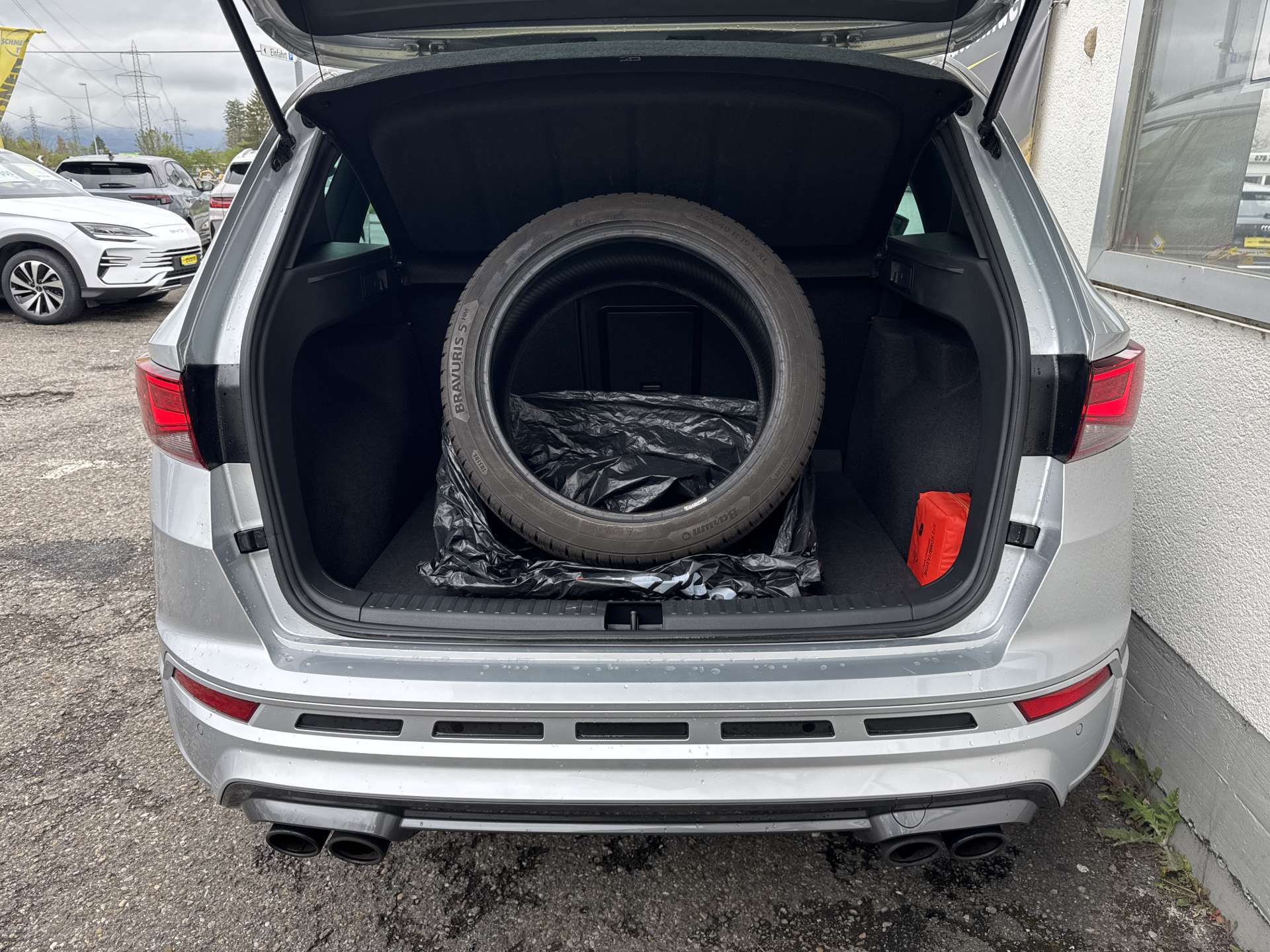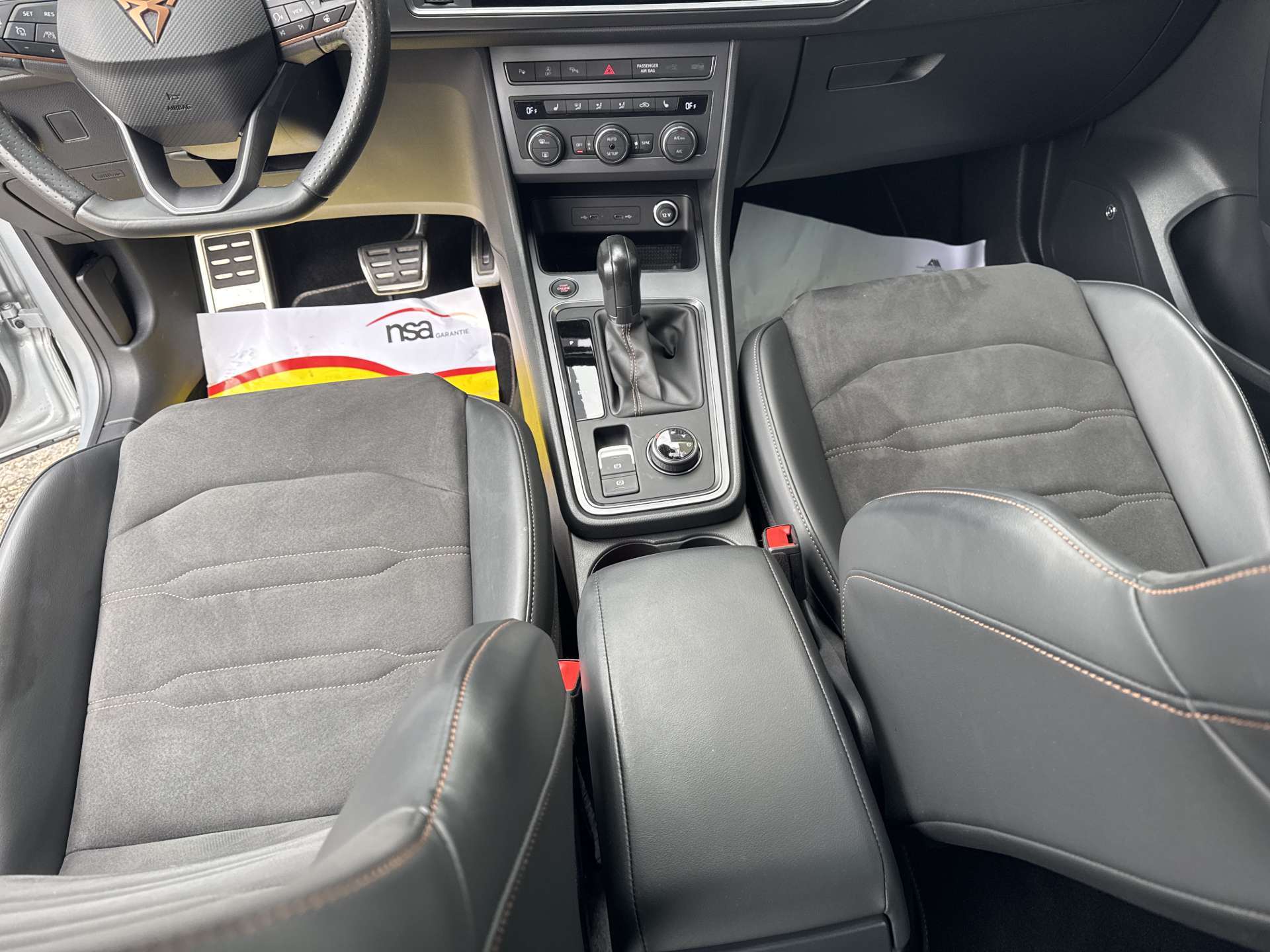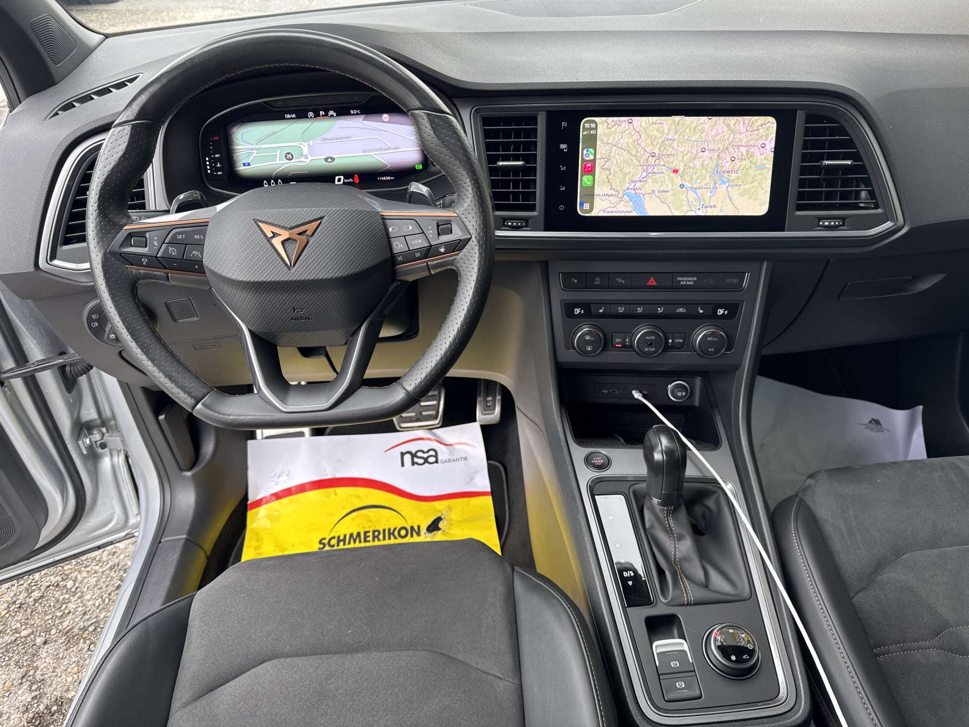 2 Schlüssel mit Fernbedienung, 3 Kopfstützen hinten, 3-Punkt-Sicherheitsgurte auf allen Plätzen, Abgedunkelte Scheiben ab B-Säule hinten, ABS, EBV elektronische Bremskraft-verteilung, Airbag: Airbag Beifahrer deaktivierbar, Airbag: Airbag Fahrer und Beifahrer, Airbag: Knie-Airbag für Fahrer, Airbag: Seitenairbag für Fahrer und Beifahrer, Airbag: Window-Kopfairbags, Allradantrieb permanent, Ambientebeleuchtung Multi-Colour, Assist: Auto-Hold-Funktion, Assist: Automatische Distanzregelung ACC, Assist: Berganfahrhilfe (Hill Holder), Assist: City Notbremsfunktion, Assist: Einparkhilfe vorne und hinten mit optischer Anzeige, Assist: Müdigkeitserkennung, Assist: Multifunktionskamera, Assist: Multikollisionsbremse, Assist: Parklenkassistent, Assist: Speedlimiter, Assist: Spurhalteassistent Lane Assist, Assist: Tempomat, Assist: Top View Camera (Rundumblick), Assist: Umfeldbeobachtung 'Front-Assist' mit City-Notbremsfunktion, Assist: Umfeldbeobachtung Front-Assist, Assist: Verkehrszeichenerkennung, Auspuffanlage mit 4 Endrohren, Aussenspiegel elektrisch einklappbar mit Bodenbeleuchtung und Beifahrerspiegelabsenkung, Aussenspiegel rechts und links beheizt,elektrisch verstell- / und einklappbar, Aussenspiegel und Türgriffe in Wagenfarbe, Beleuchtetes Einstiegssystem mit Umfeldbeleuchtung, Bordcomputer, Bremsenergie-Rückgewinnung, CUPRA Drive Profile mit "driving experience button" Comfort, Sport, CUPRA, Individual, Snow, Offroad, Dachhimmel schwarz, Dachreling schwarz, Dekor: Dekorblenden in Grau glänzend, Einstiegsleisten in Aluminium, Elektrische Fensterheber vorne + hinten, Elektronische Differentialsperre (XDS), Elektronische Parkbremse, Elektronisches Stabilitäts-Programm, Fahrwerk: Adaptive Fahrwerksregelung DCC, Fahrwerk: Progressivlenkung, Fensterschachtzierleisten in Aluminium, Full Digital Cockpit, Fussgängerschutz, Getriebe: Sequentielles 7-Gang-Getriebe mit Automatikfunktion, Gurtkontrolle, Heckdiffusor, Heckscheiben-Wisch-/Waschanlage mit Intervall, Heckscheibenheizung, Heckspoiler, Höhenverstellbare Gurten vorne, Innenleuchten LED, Innenspiegel automatisch abblendbar, Klima: 2-Zonen-Klimaautomatik, Lackierung: Uni-Lackierung, LED Innenraumbeleuchtung, Lenkrad und Schalthebelgriff in Leder, Lenkrad: Multifunktionslenkrad mit Schaltwippen, Licht- und Regensensor, Licht: Coming-home-Funktion, Licht: LED Scheinwerfer, Licht: LED-Heckleuchten mit dynamischem Blinklicht, Licht: LED-Nebelscheinwerfer mit Cornering-Funktion, Licht: Leuchtweitenregulierung dynamisch, Media: 2 USB C Anschlüsse hinten und vorne, Media: 9.2" 3D Infotainment (MIB3), Media: CUPRA Connect Online Infotainment für Navigationssystem, Media: CUPRA Connect Remote & Access für Navigationssystem, Media: CUPRA Connectivity Box, Media: CUPRA FullLink, Media: CUPRA Navigationssystem, Media: DAB+ (Digital Audio Broadcasting), Media: Kartenmaterial ''Europa'', Media: Mobiltelefon Freisprecheinrichtung Bluetooth, Media: Radiovorbereitung, Antenne, Entstörung und 8 LS, Media: SDXC-Kartenleser, Media: Sprachsteuerung, Nebelschlussleuchte, Pollenfilter (Staubfilter), Polster: Sitzbezüge in Dinamica "black", Räder: Alufelgen 8J x 19", Machined Sport Black / Silver (245/40 R19), Räder: Reifendruck-Kontrollanzeige, Räder: Reifenreparatur-Set (Tire Fit), Radlaufblenden in Wagenfarbe, Rücksitzlehne geteilt abklappbar, Scheibenwaschdüsen beheizt, Scheinwerferreinigungsanlage, Schlüsselloses Schliess- und Startsystem (KESSY), Servolenkung geschwindigkeitsabhängig, Sitze: Easy-Entry Lehnenentriegelung, Sitze: Einstellbare Lendenwirbelstütze für den Fahrer und Beifahrer, Sitze: Gurtstraffer vorne, Sitze: ISOFIX Kindersitzvorrichtung, Sitze: Kopfstützen vorne höhenverstellbar, Sitze: Mittelarmlehne hinten, Sitze: Mittelarmlehne vorne, Sitze: Schublade unter Fahrersitz, Sitze: Sport-Schalensitze vorne, Sonnenblende Fahrer und Beifahrerseite, Sportauspuffanlage, Stop/Start-Technologie, Teppichfussmatten vorne und hinten, Vordersitze Beheizbar, Vordersitze höhenverstellbar, Wegfahrsperre elektronisch, Zentralverriegelung mit Fernbedienung